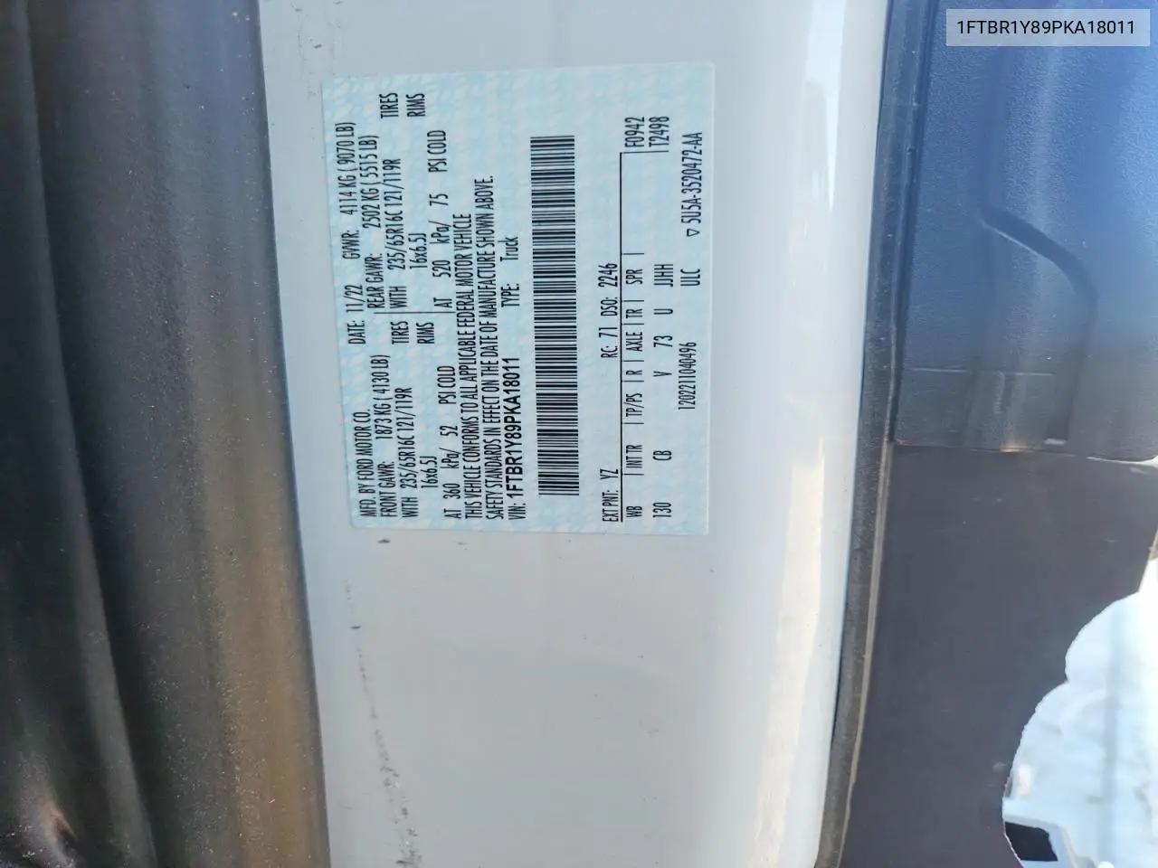 История автомобиля по VIN: 1FTBR1Y89PKA18011