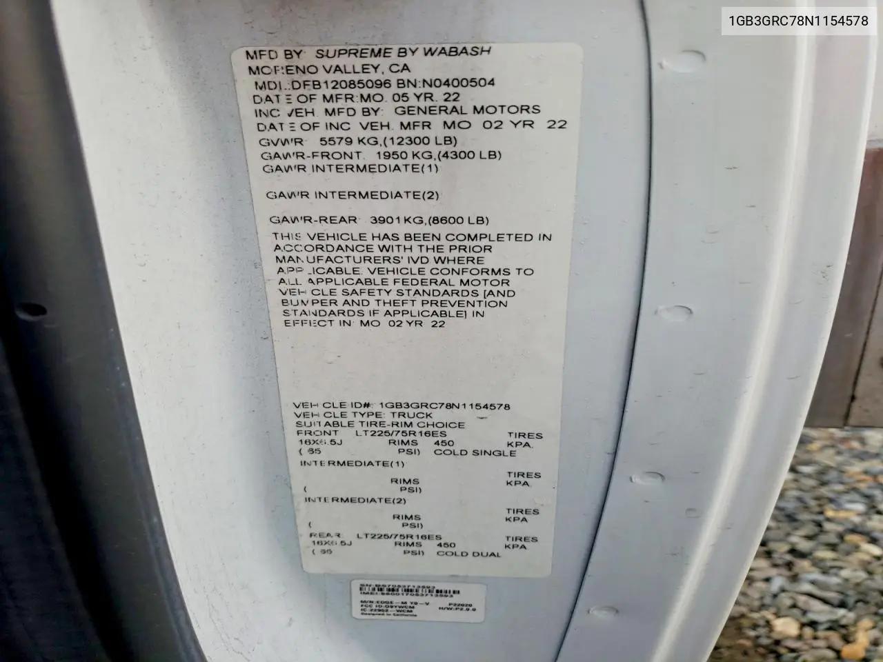 История автомобиля по VIN: 1GB3GRC78N1154578
