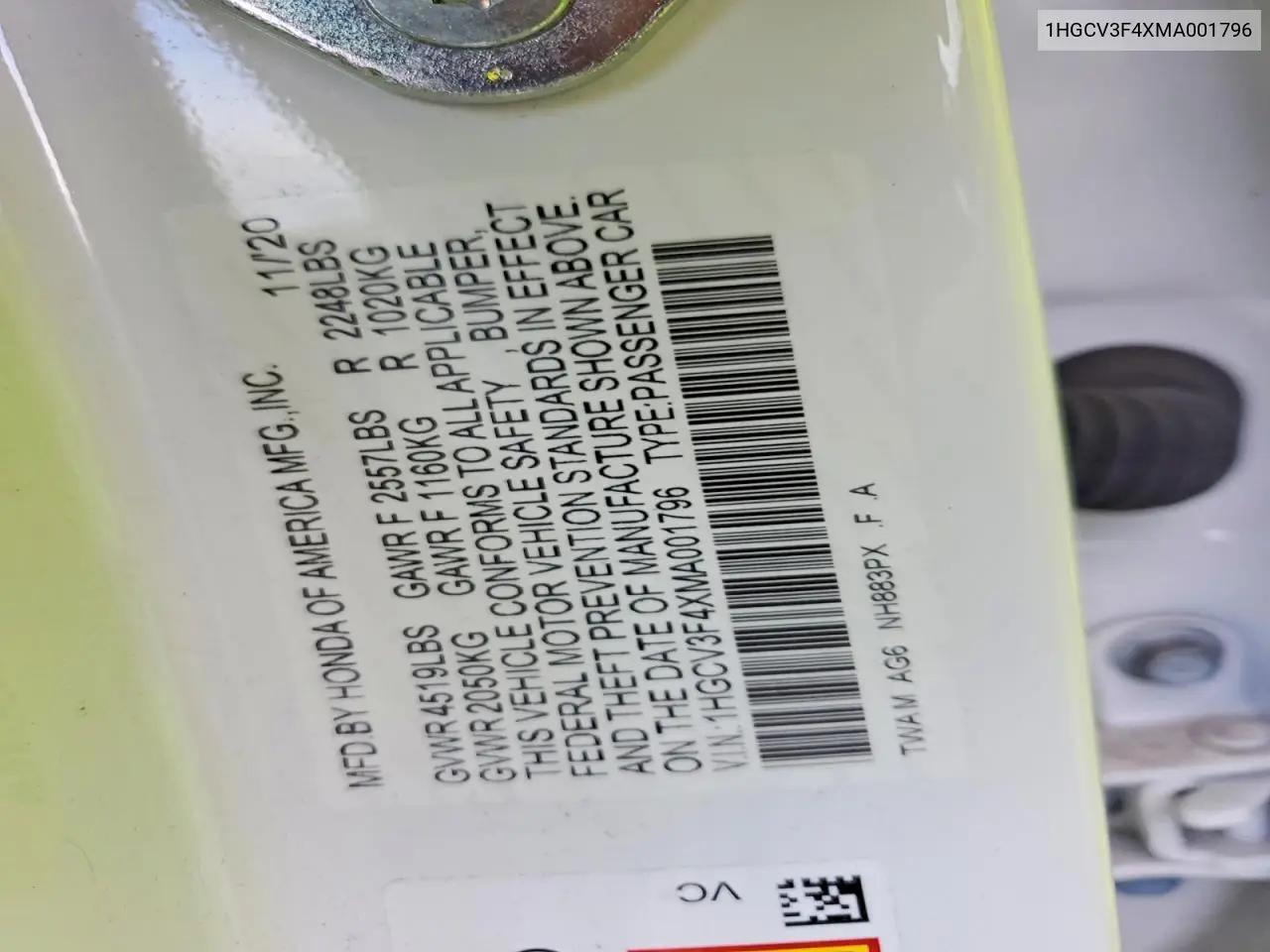 История автомобиля по VIN: 1HGCV3F4XMA001796