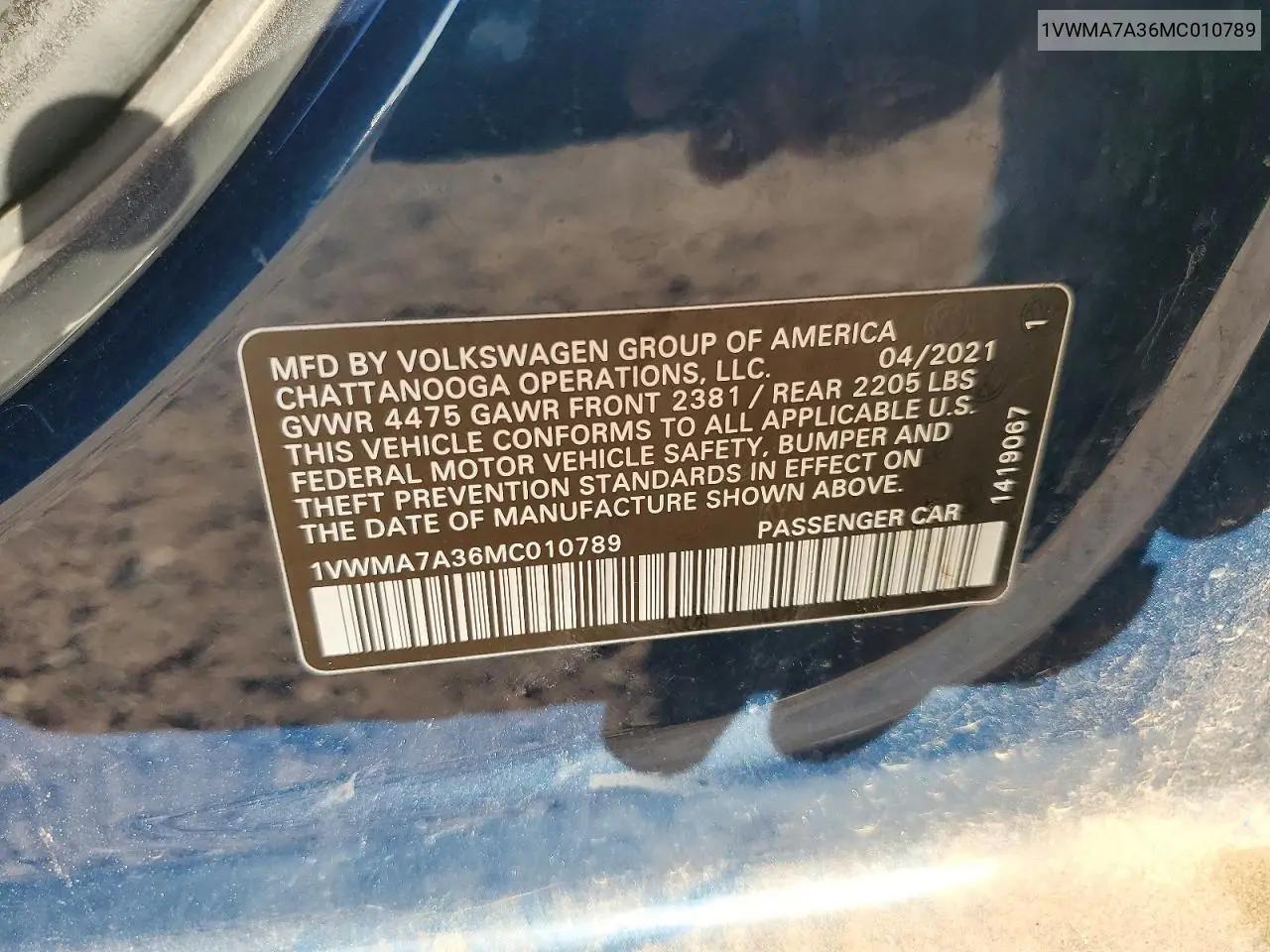 История автомобиля по VIN: 1VWMA7A36MC010789
