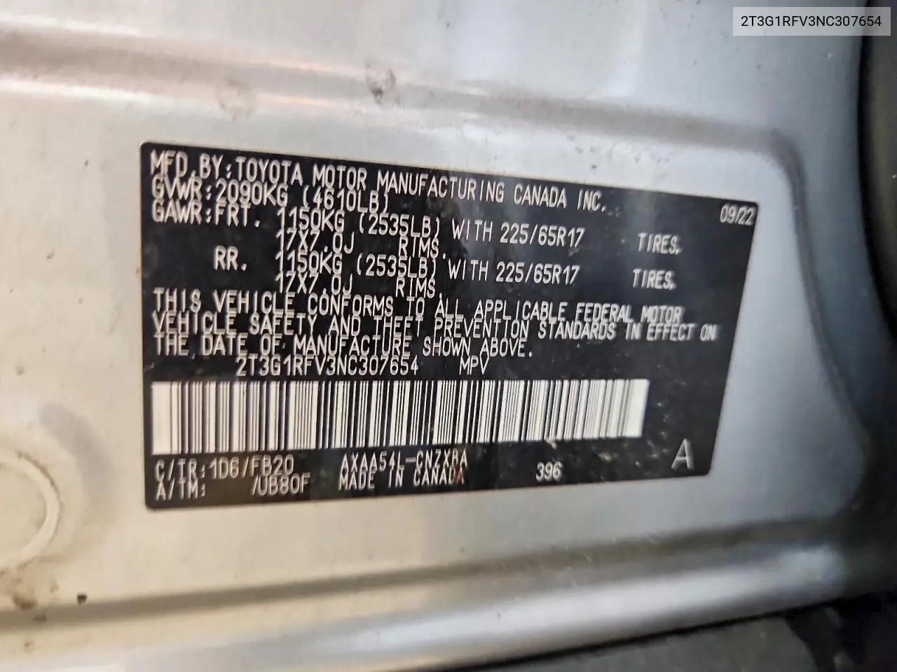 История автомобиля по VIN: 2T3G1RFV3NC307654