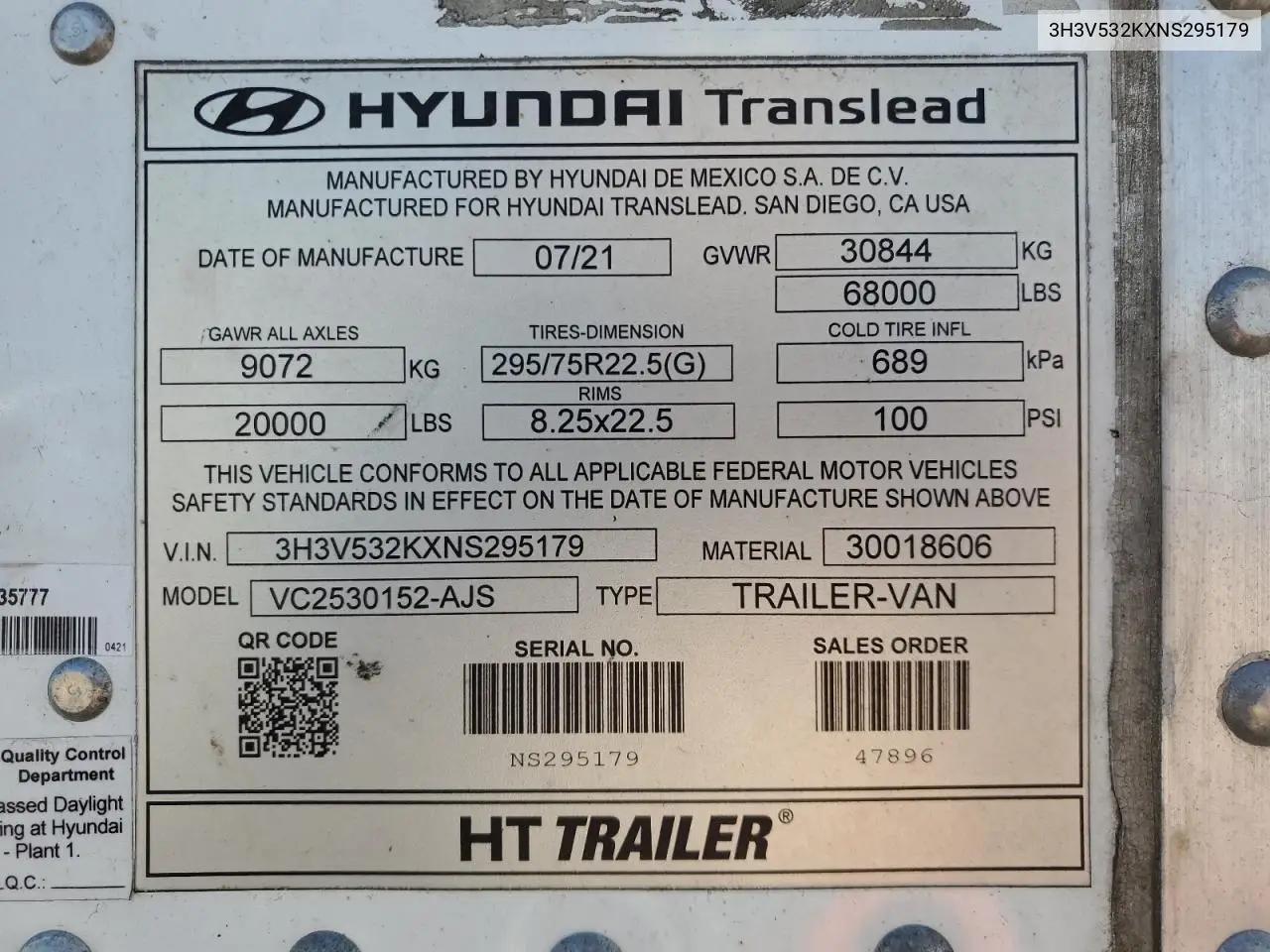Hyundai Translead Vc2530152-Ajs Dry Van Trailer 2022·Лот #85362495