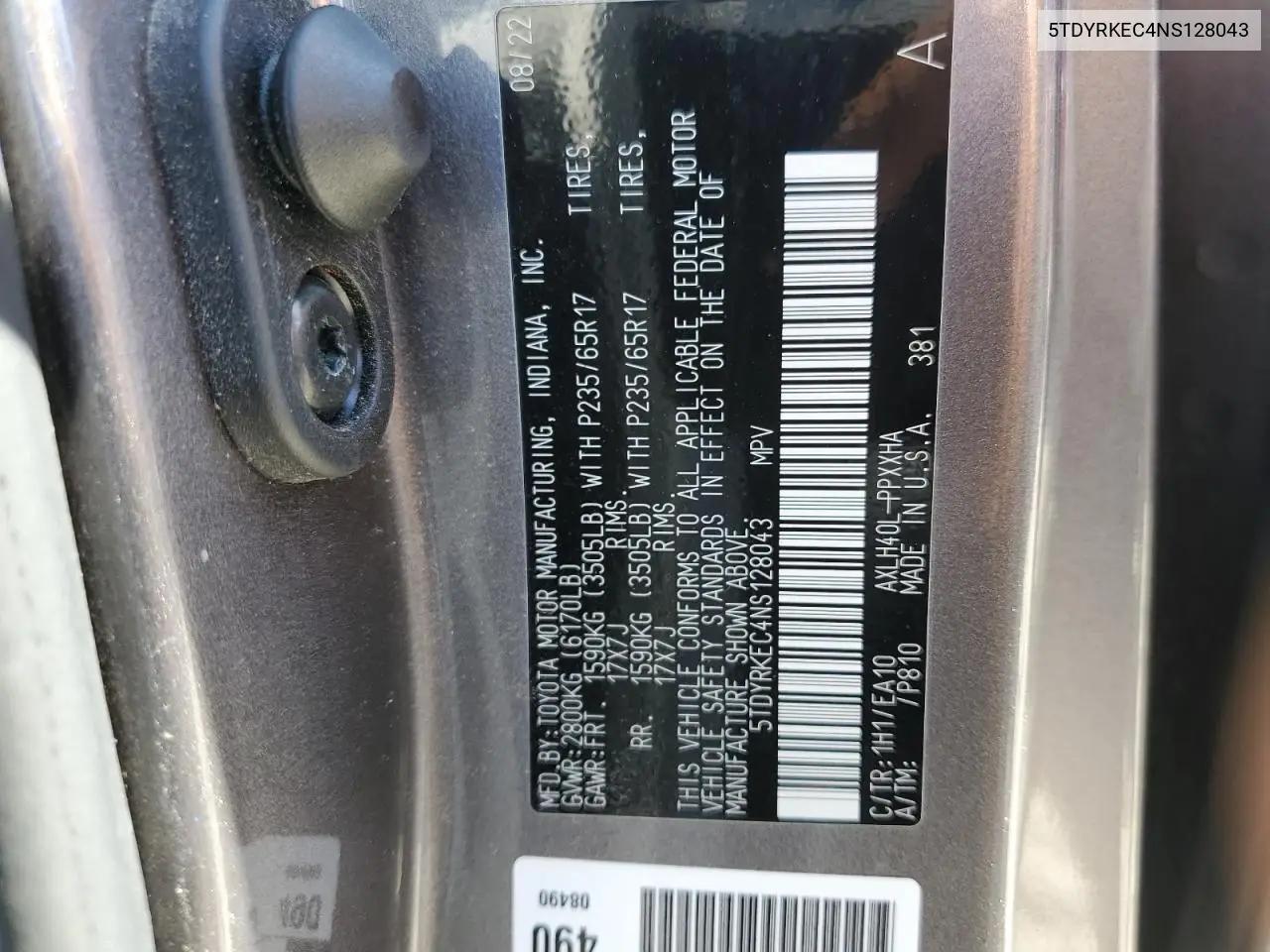 История автомобиля по VIN: 5TDYRKEC4NS128043