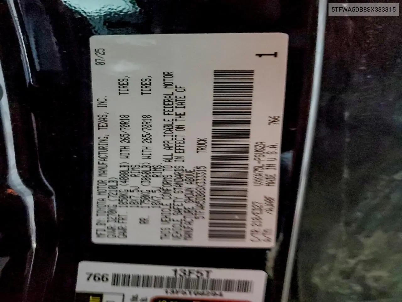 История автомобиля по VIN: 5TFWA5DB8SX333315